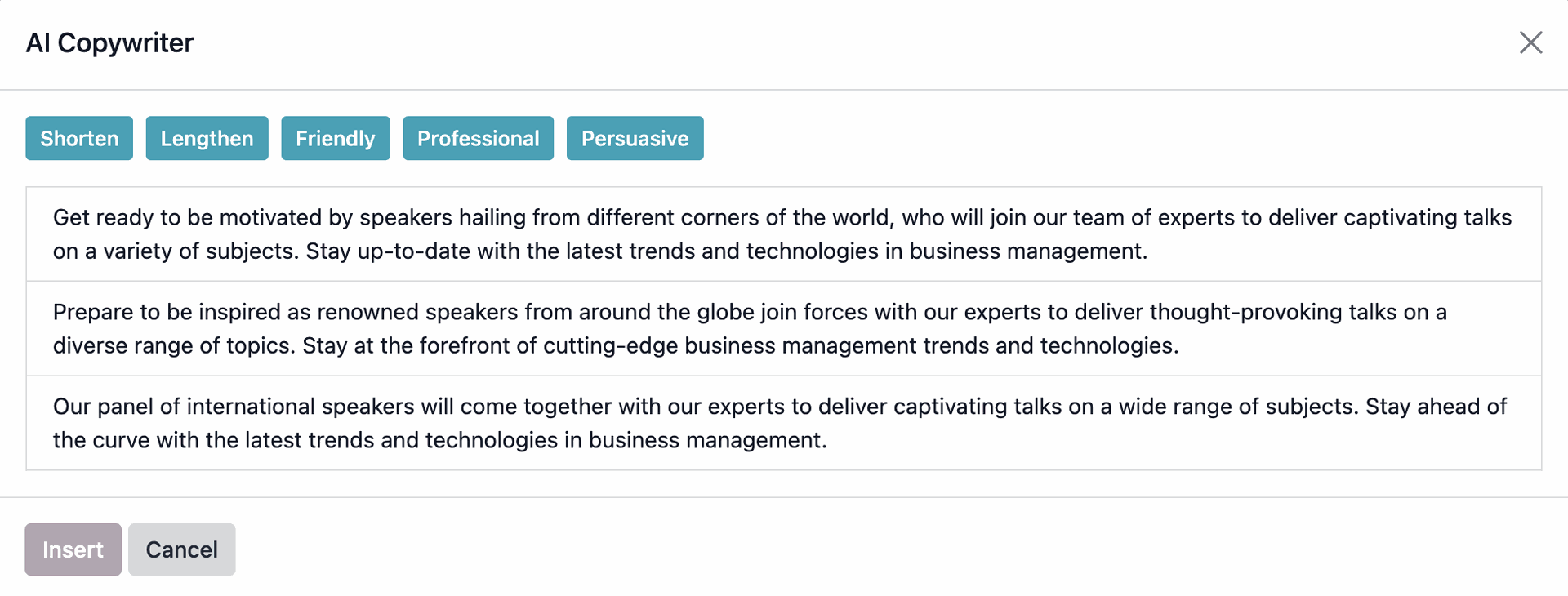 Here is how to generate alternatives for you texts with the AI Copywriter: