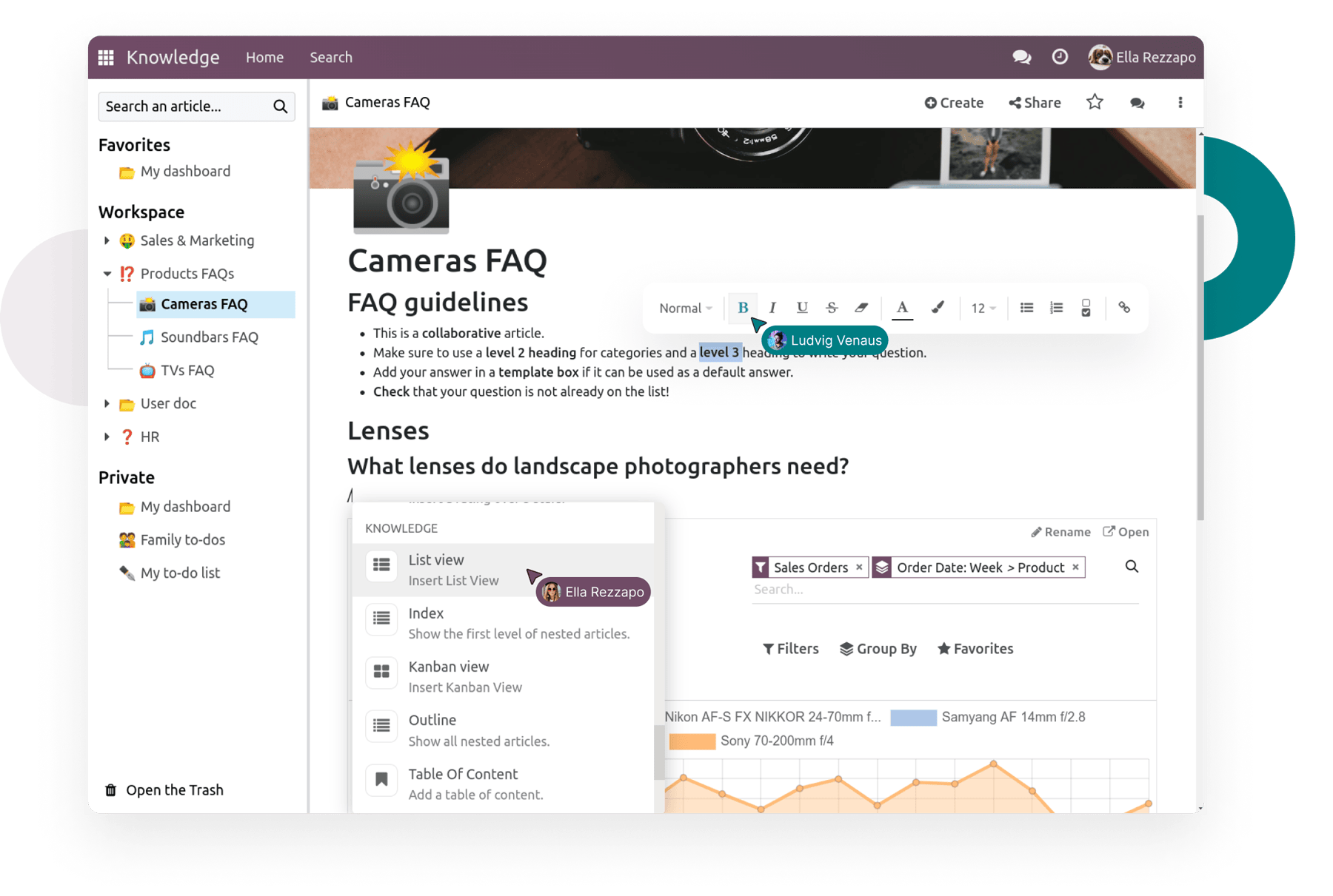 When first announced, the Knowledge app was part of the Odoo community, but it’s now exclusively available on Odoo Enterprise Edition. Knowledge will allow you to replace tools like Notion and word processors, integrating all your documentation of projects and processes in one place.
