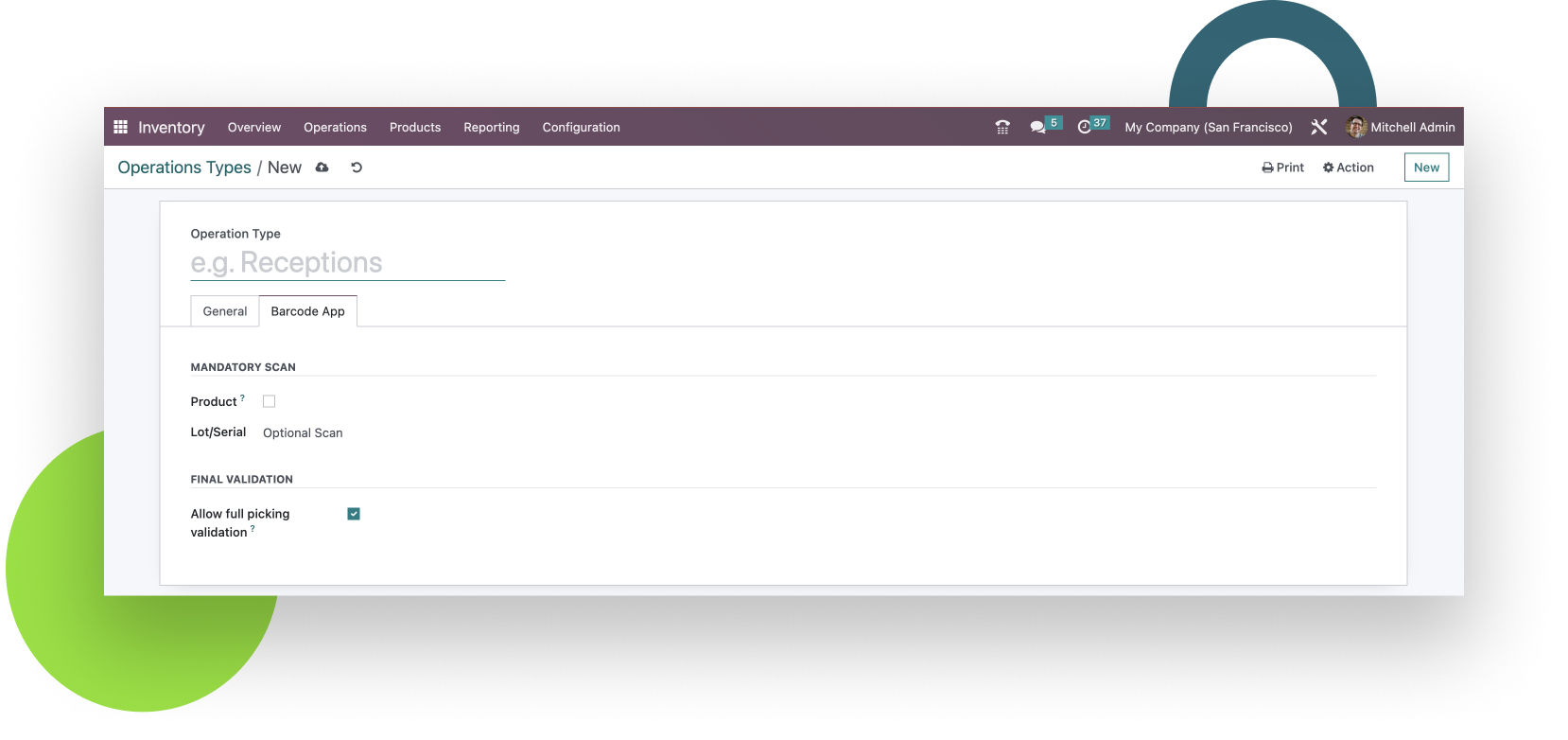 The Barcode app now integrates with the Inventory app giving you quick access to... Getting started with barcode scanning in Odoo has never been easier. Simplify and improve your warehouse processes and reduce operations time and errors with Odoo’s barcode plugins.