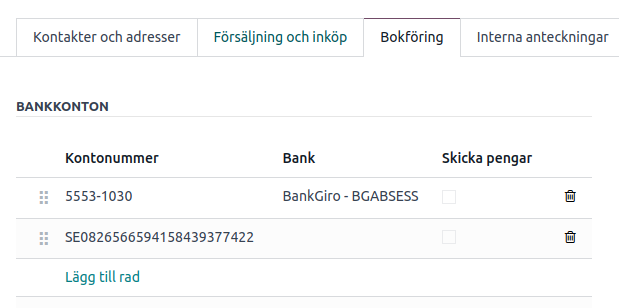 För att se till att rätt kontaktuppgifter finns på fakturan, gå till Inställningar > Användare & bolag och kontrollera att uppgifterna är korrekt ifyllda. Du kan även lägga till bankuppgifter under ditt företags kontaktkort i appen Kontakter.